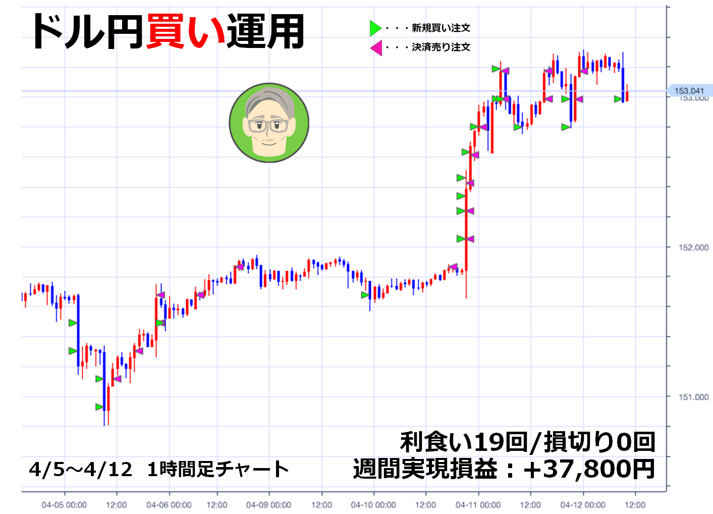 この値動きで19回の利益確定で37,800円を獲得しています。
