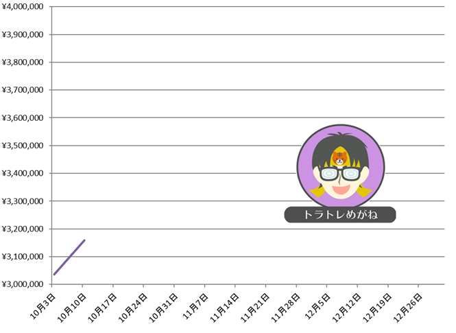 期間 累計実現損益 10月1日~10月2日 +46,531円 10月3日~10月9日 +132,202円