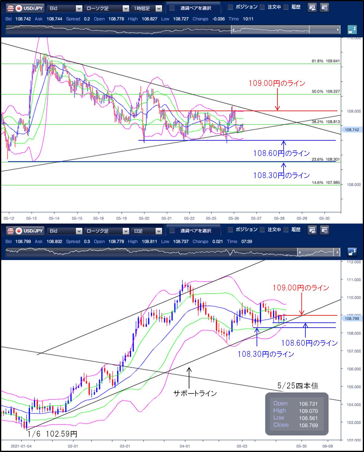 2021/5/25のドル円相場の考察・本日の見通し