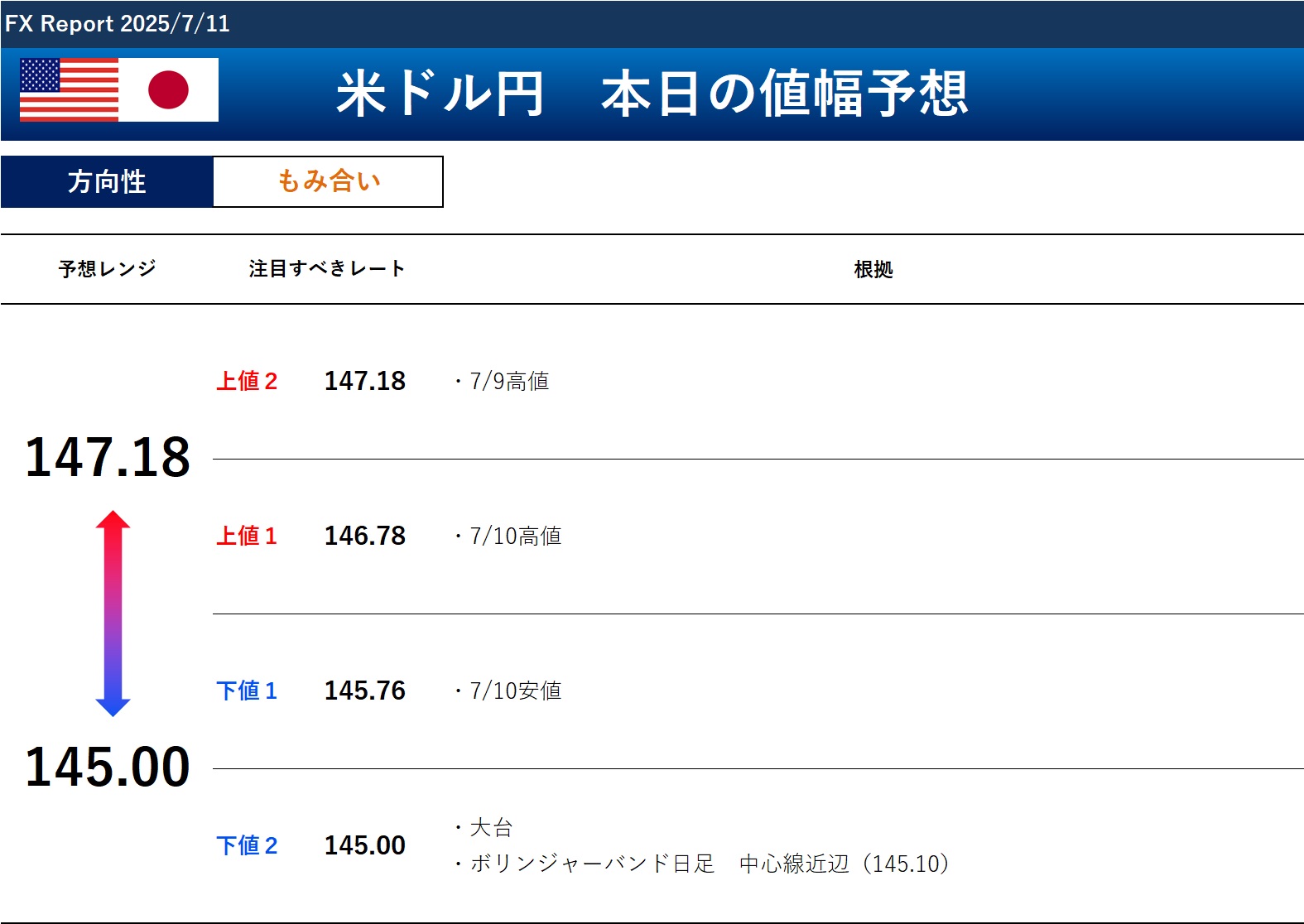 以上のことから、本日のドル円の方向性と予想レンジは以下の通りです。