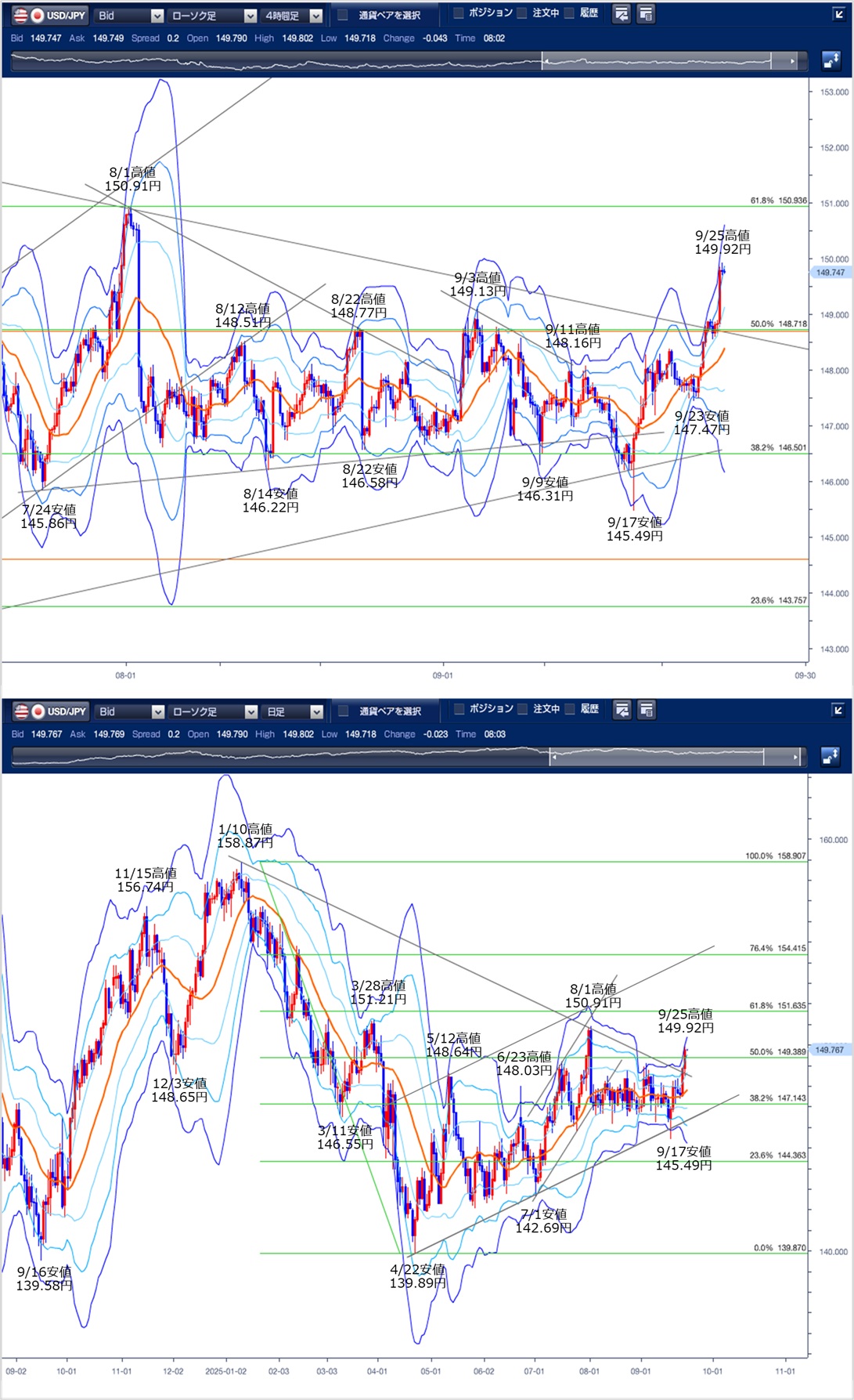 ドル円の前日の為替相場の動きを、各テクニカルで検証します。
