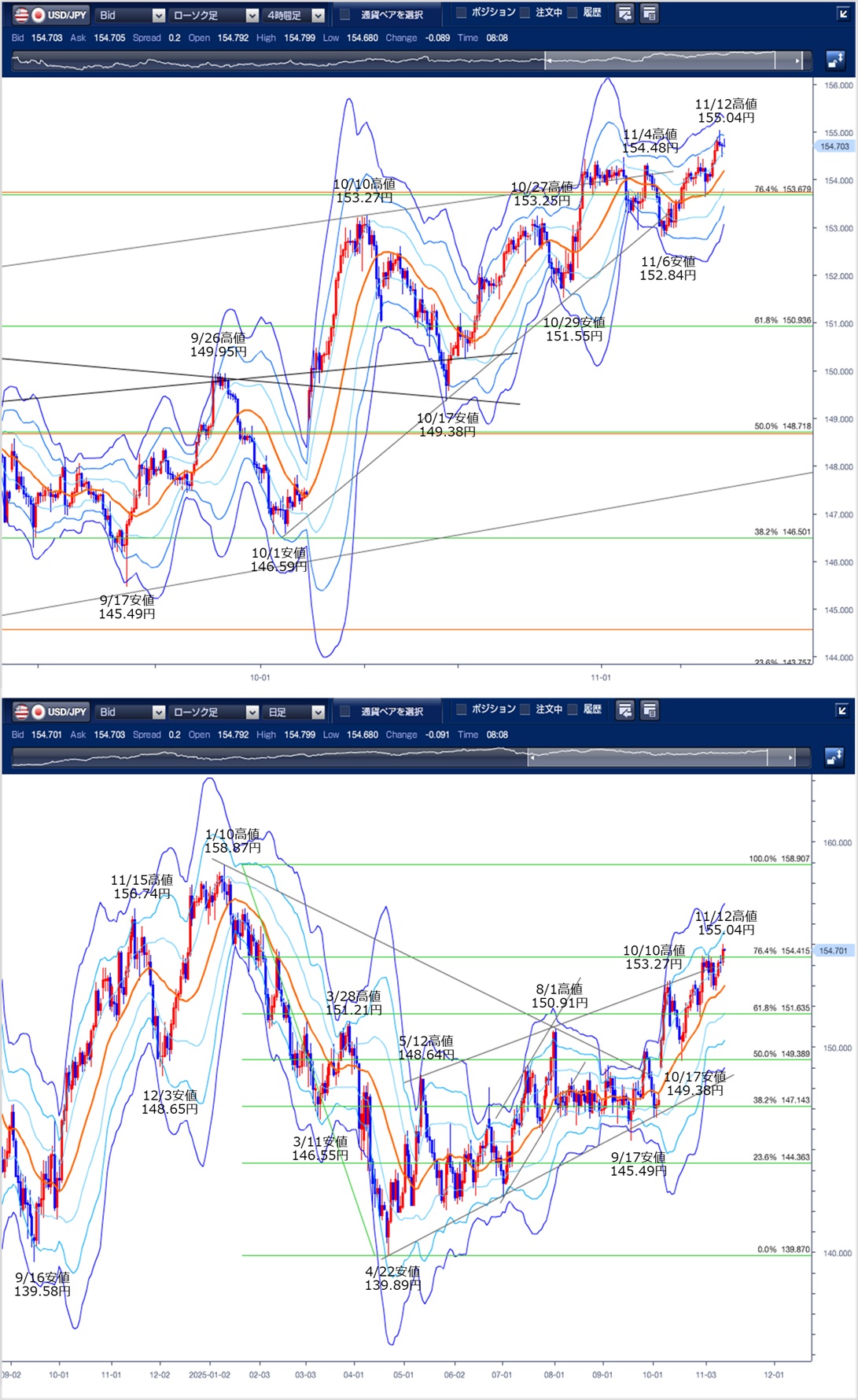 ドル円の前日の為替相場の動きを、各テクニカルで検証します。