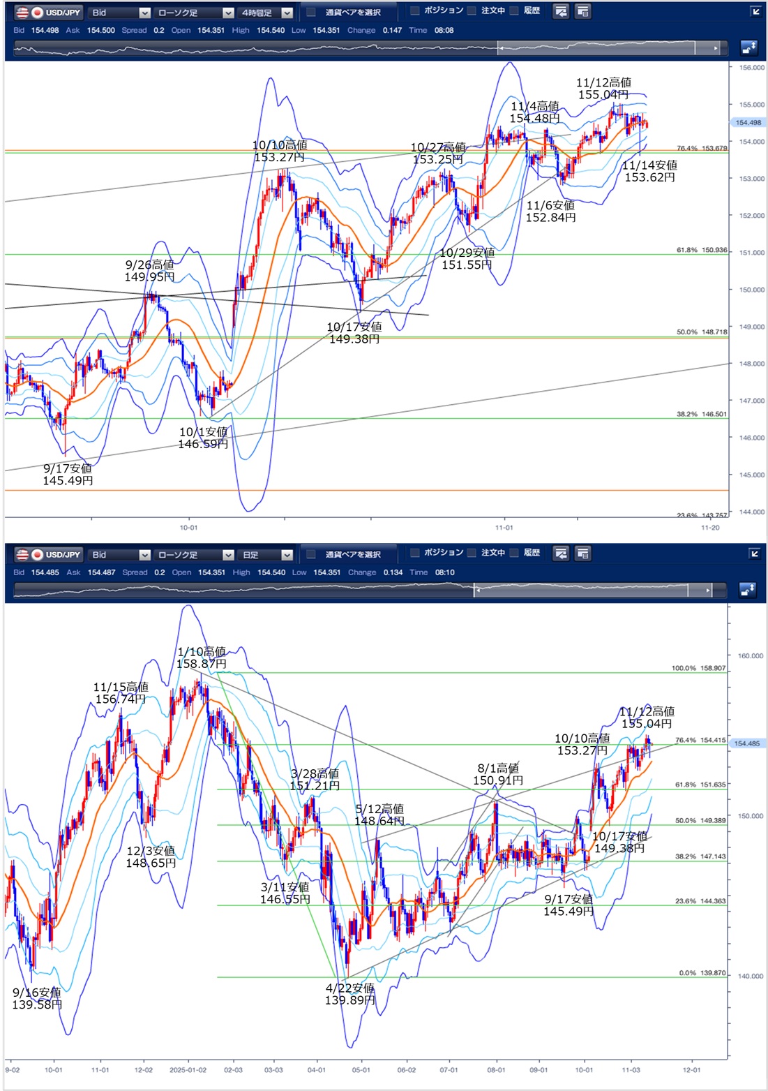ドル円の前日の為替相場の動きを、各テクニカルで検証します。