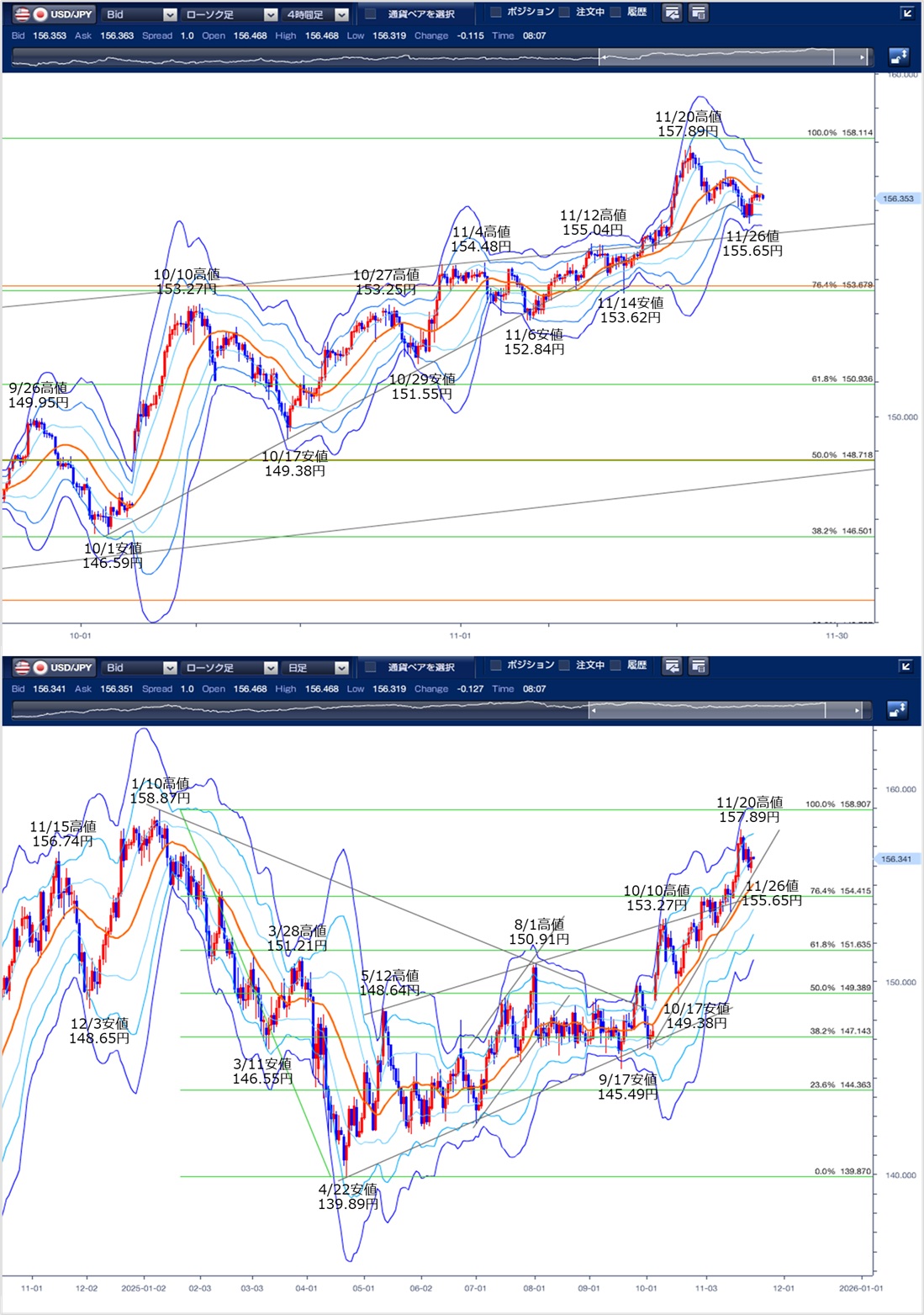 ドル円の前日の為替相場の動きを、各テクニカルで検証します。
