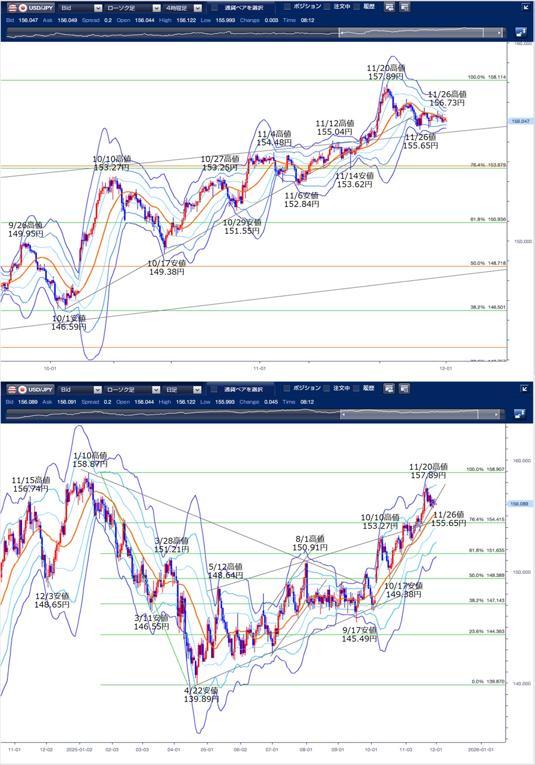 ドル円の前日の為替相場の動きを、各テクニカルで検証します。