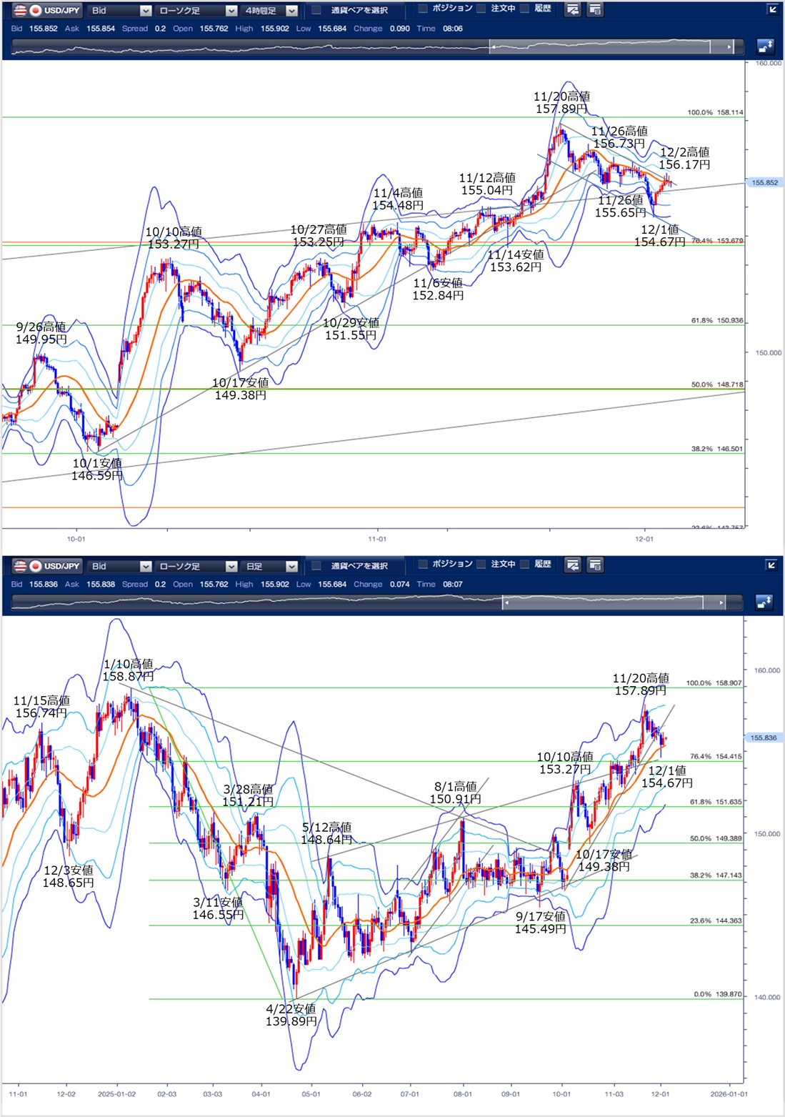 ドル円の前日の為替相場の動きを、各テクニカルで検証します。