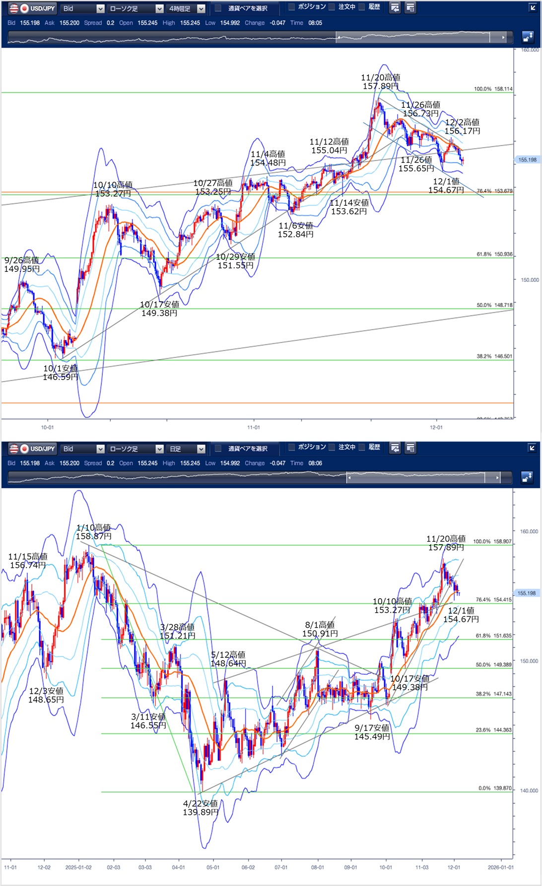 ドル円の前日の為替相場の動きを、各テクニカルで検証します。