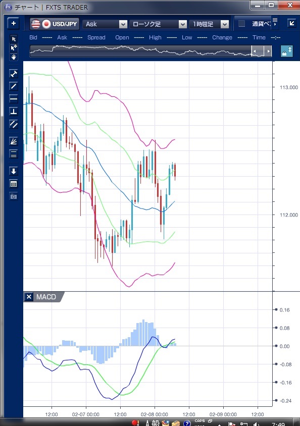 ドル円の前日の為替相場の動きを、各テクニカルで検証します。