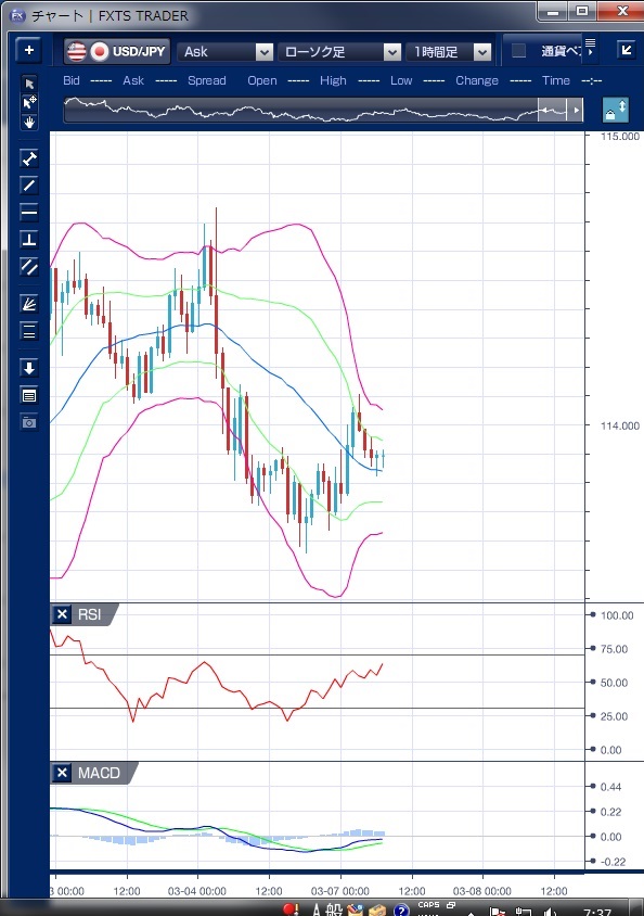 ドル円の前日の為替相場の動きを、各テクニカルで検証します。