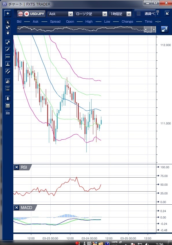 ドル円の前日の為替相場の動きを、各テクニカルで検証します。