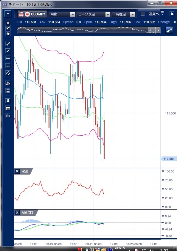 ドル円の前日の為替相場の動きを、各テクニカルで検証します。