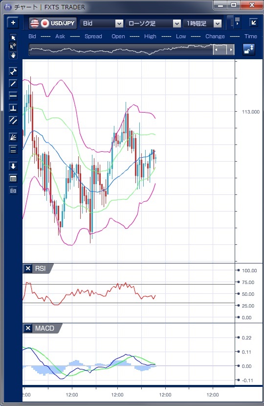 ドル円の前日の為替相場の動きを、各テクニカルで検証します。