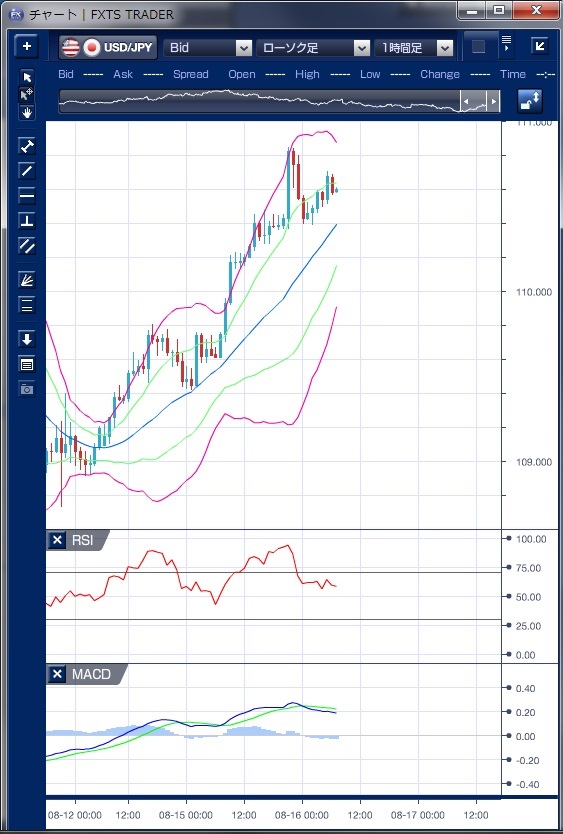 ドル円の前日の為替相場の動きを、各テクニカルで検証します。