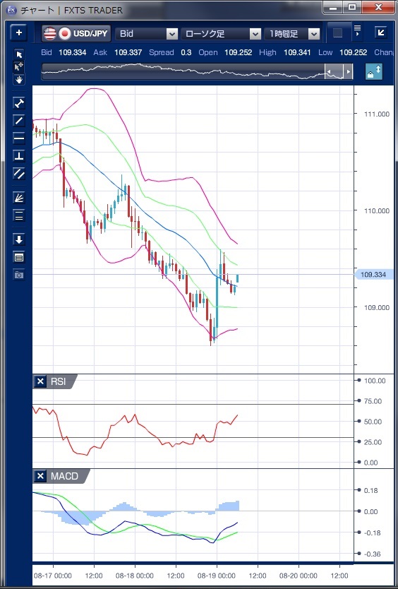 ドル円の前日の為替相場の動きを、各テクニカルで検証します。