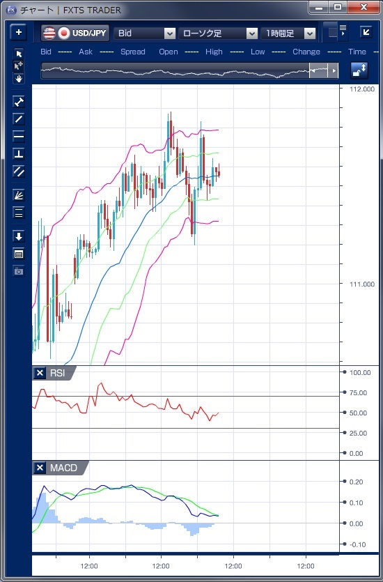 ドル円の前日の為替相場の動きを、各テクニカルで検証します。