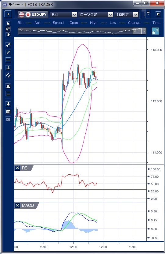 ドル円の前日の為替相場の動きを、各テクニカルで検証します。