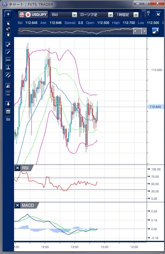 ドル円の前日の為替相場の動きを、各テクニカルで検証します。