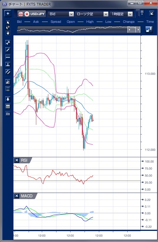 ドル円の前日の為替相場の動きを、各テクニカルで検証します。
