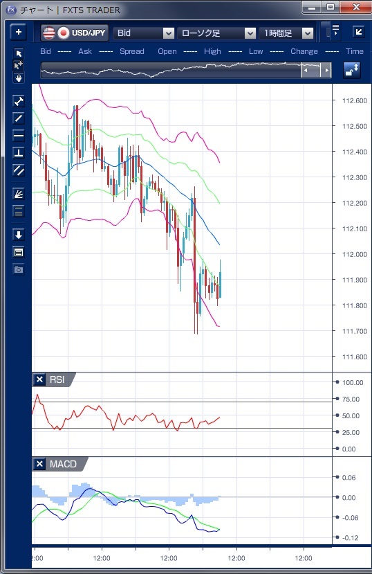ドル円の前日の為替相場の動きを、各テクニカルで検証します。