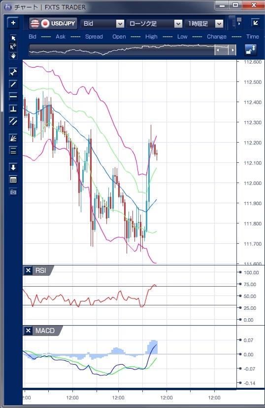 ドル円の前日の為替相場の動きを、各テクニカルで検証します。