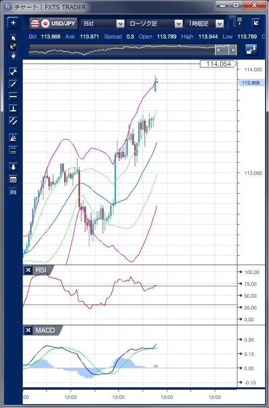ドル円の前日の為替相場の動きを、各テクニカルで検証します。