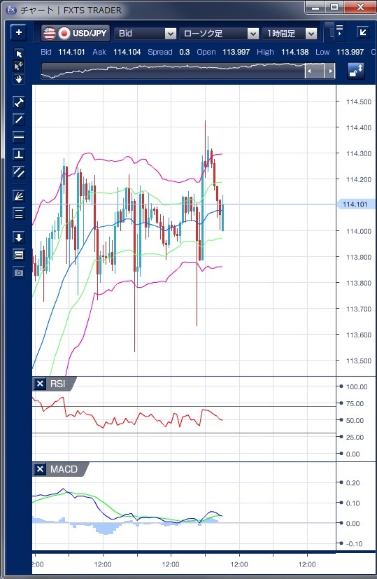 ドル円の前日の為替相場の動きを、各テクニカルで検証します。