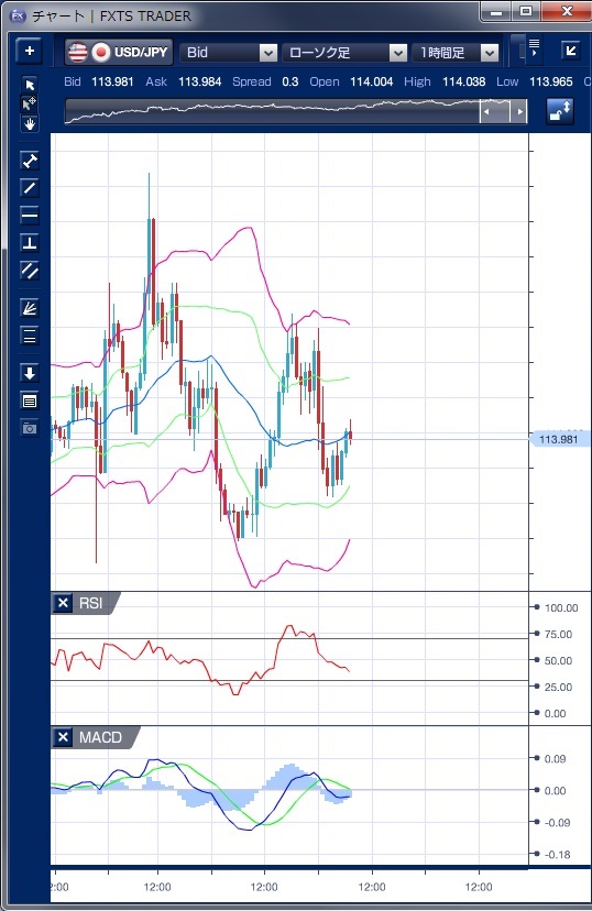 ドル円の前日の為替相場の動きを、各テクニカルで検証します。