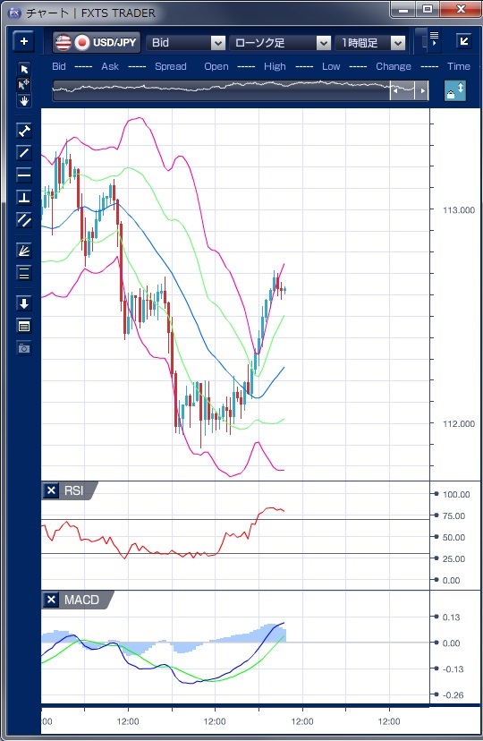 ドル円の前日の為替相場の動きを、各テクニカルで検証します。