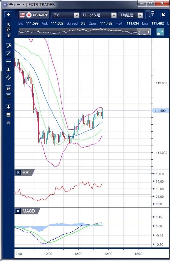 ドル円の前日の為替相場の動きを、各テクニカルで検証します。