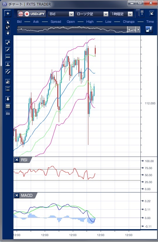 ドル円の前日の為替相場の動きを、各テクニカルで検証します。