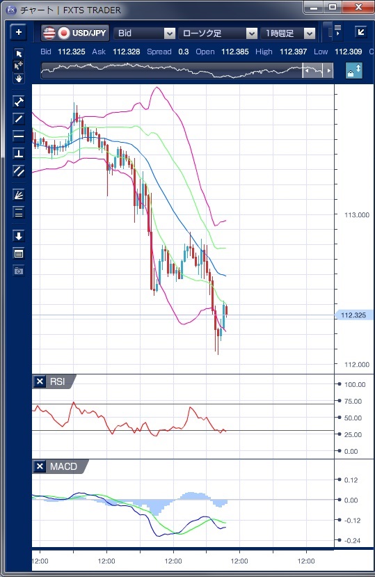 ドル円の前日の為替相場の動きを、各テクニカルで検証します。