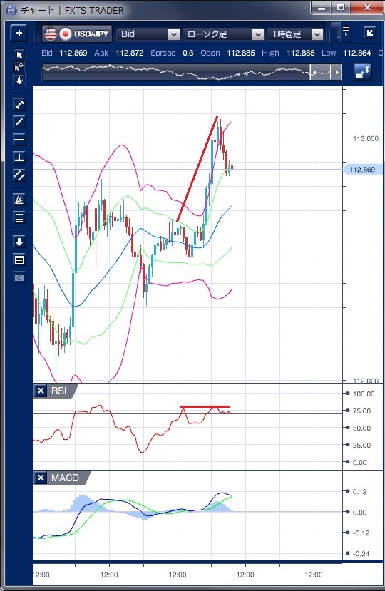 ドル円の前日の為替相場の動きを、各テクニカルで検証します。
