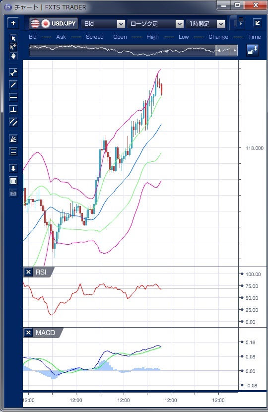 ドル円の前日の為替相場の動きを、各テクニカルで検証します。