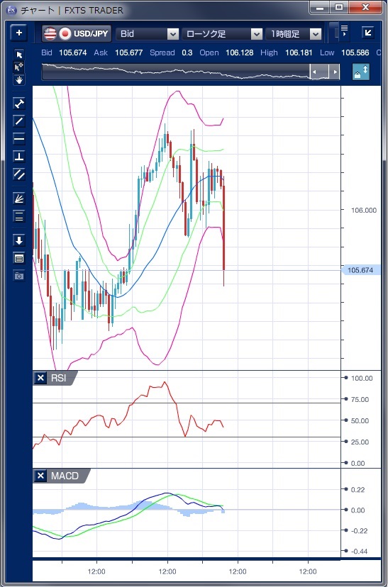 ドル円の前日の為替相場の動きを、各テクニカルで検証します。