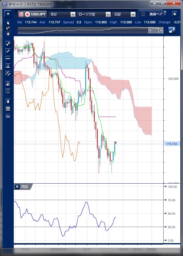 ドル円の前日の為替相場の動きを、各テクニカルで検証します。