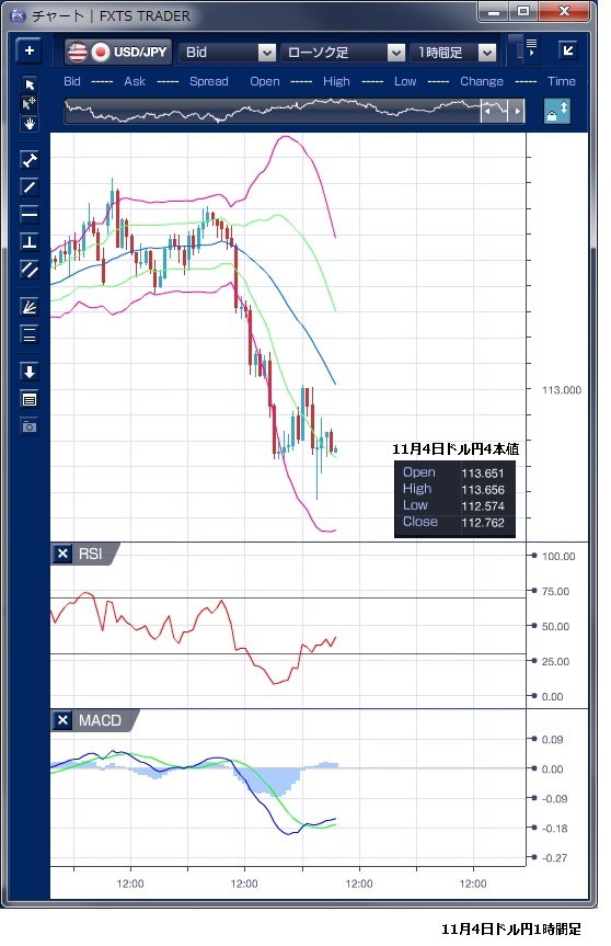 ドル円の前日の為替相場の動きを、各テクニカルで検証します。