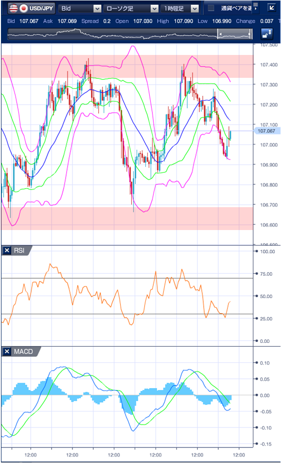 ドル円の前日の為替相場の動きを、各テクニカルで検証します。