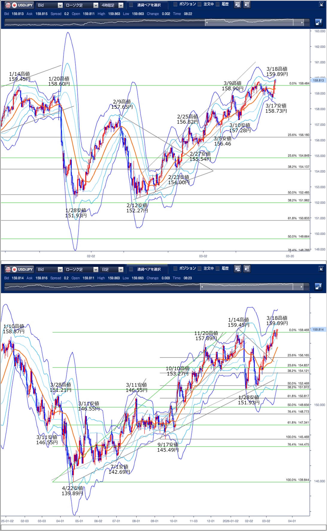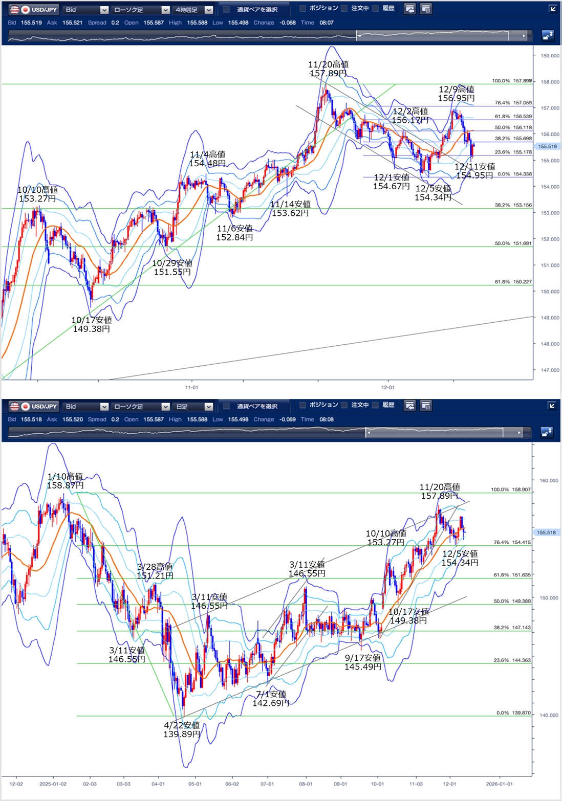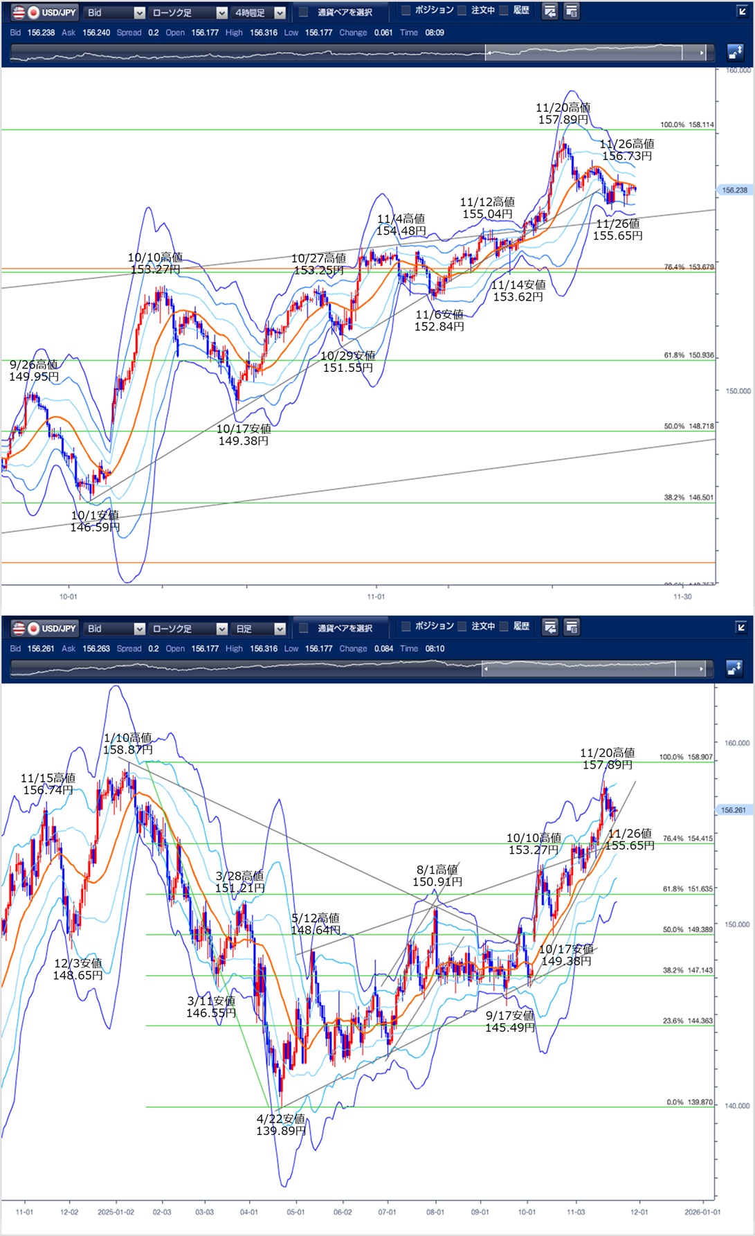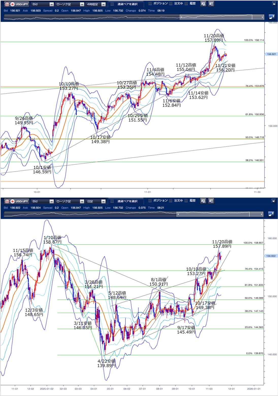 ドル円の前日の為替相場の動きを、各テクニカルで検証します。